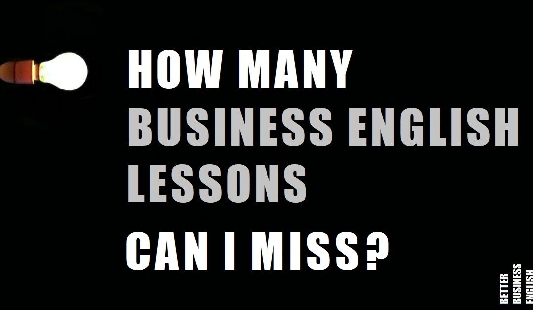 Most business English courses are designed to absorb about 25 % absenteeism, because they include revision sessions to ensure continuous learning—so people who miss a class every now and then can also learn effectively.